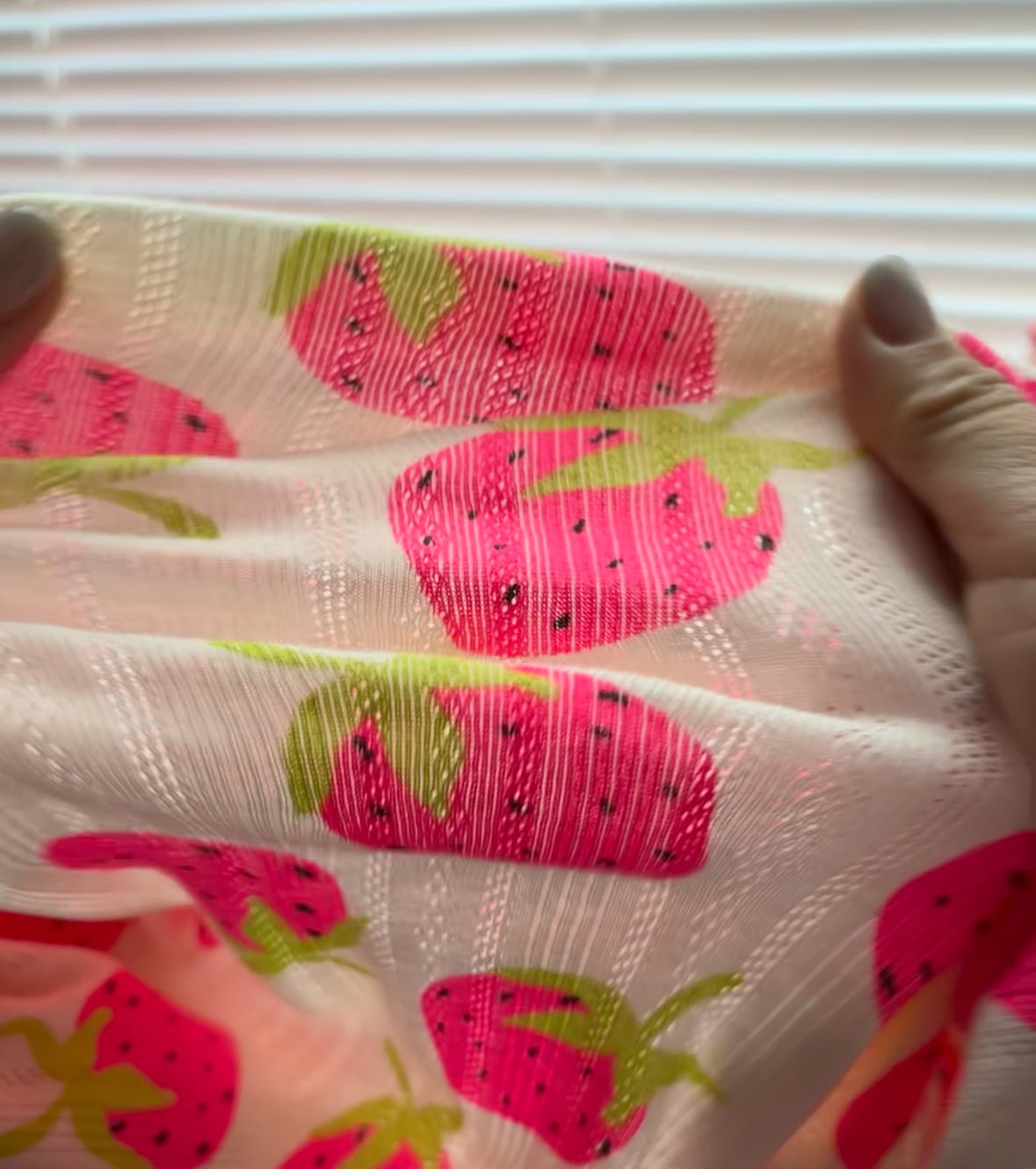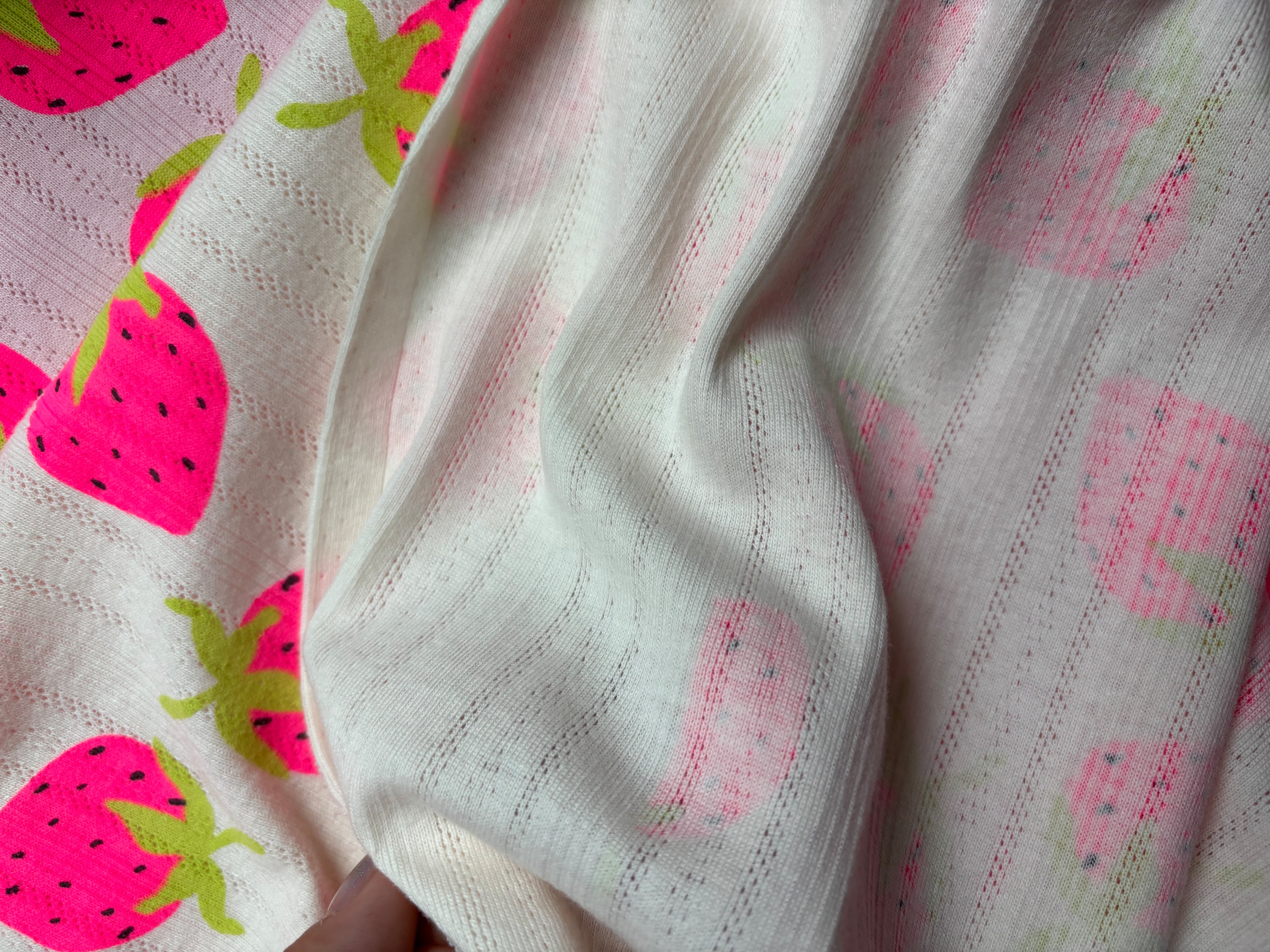 大きなネオンいちご×アイレットニットがかわいい生地です♡