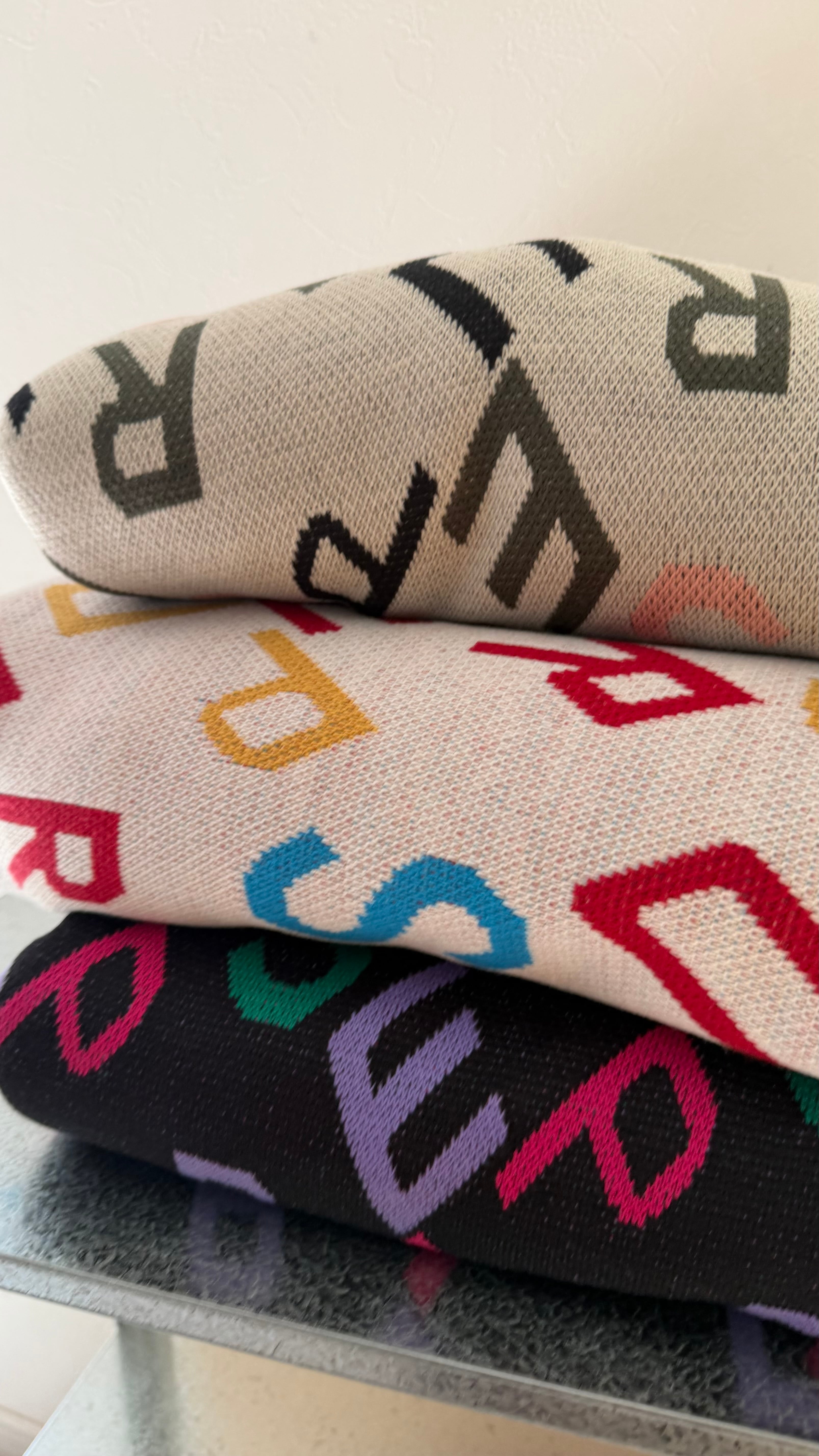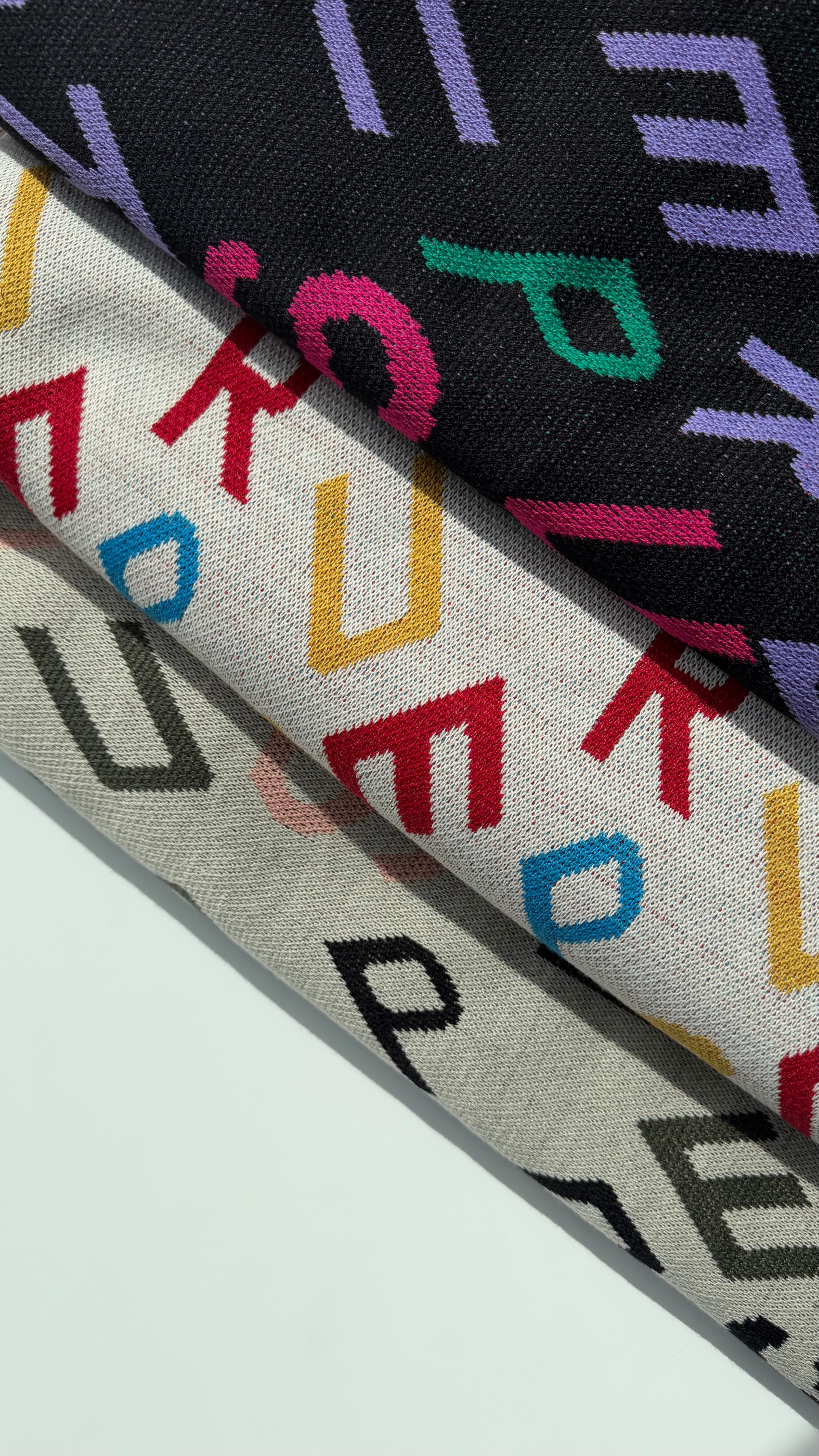 しっかりとしたジャガードニットで、カラフルで大きめのSUPERがとっても可愛くて目を惹きます♡